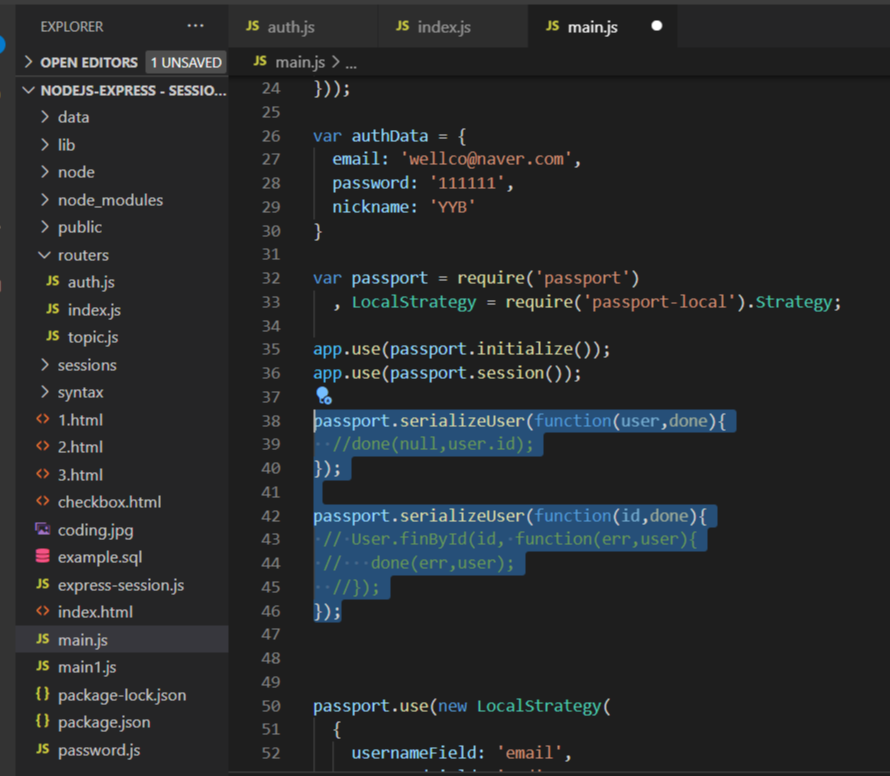 5.그리고 passport가 내부적으로 session을 이용하려면 serialize가 필요하다(*참조 passportjs.org)