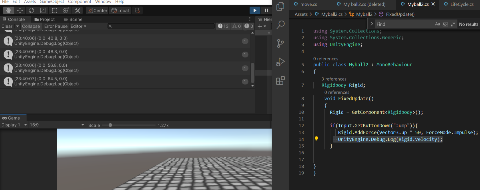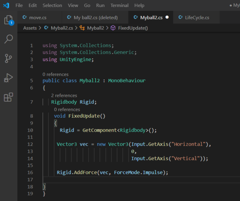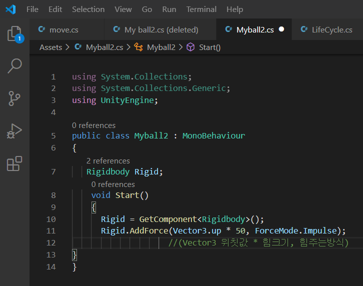 1. Rigidbody 컴포넌트를 C#으로 가져와서 변수로 담기