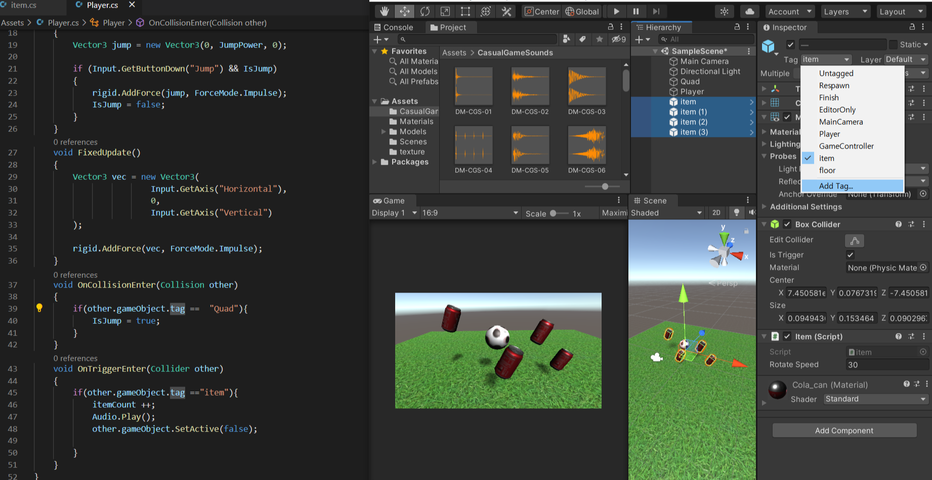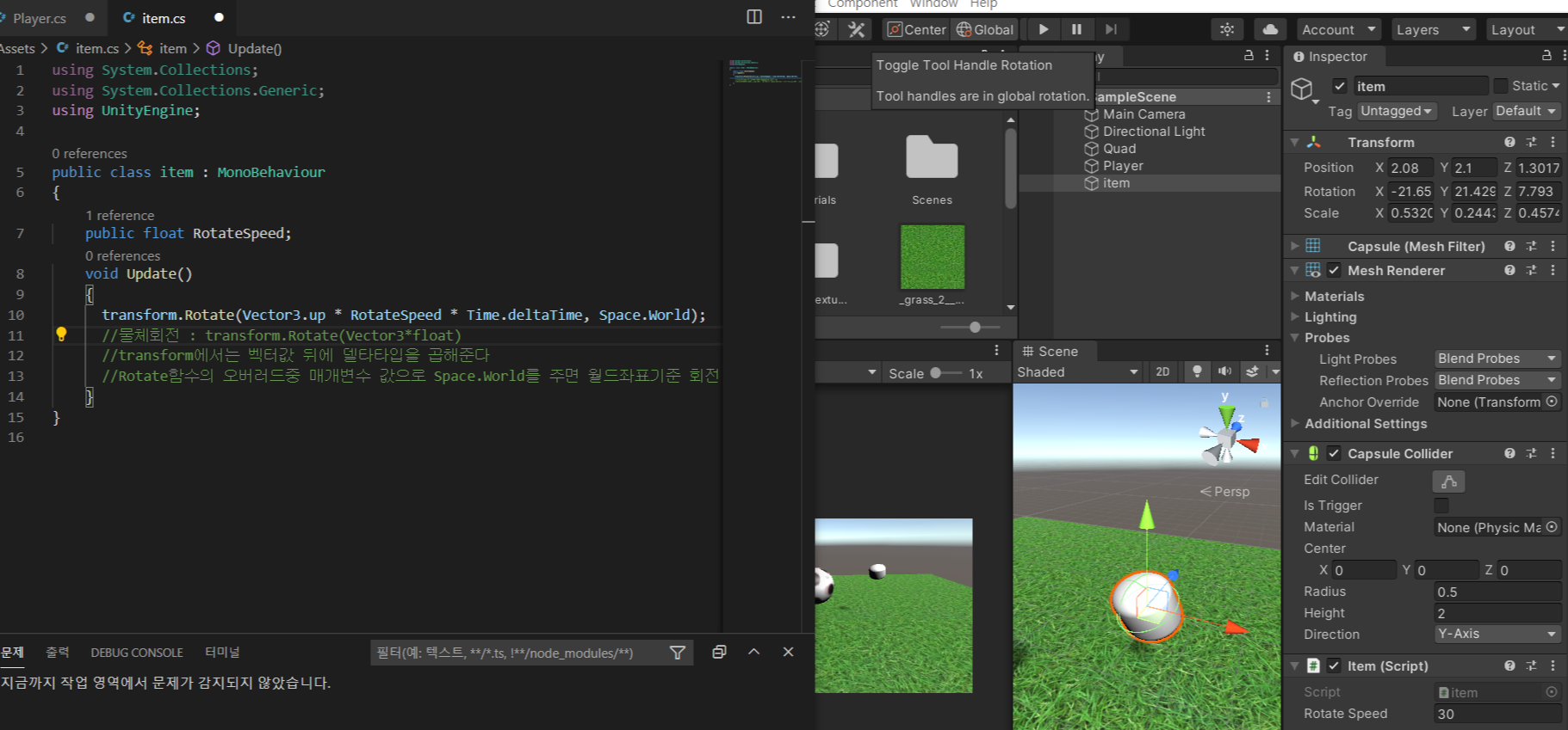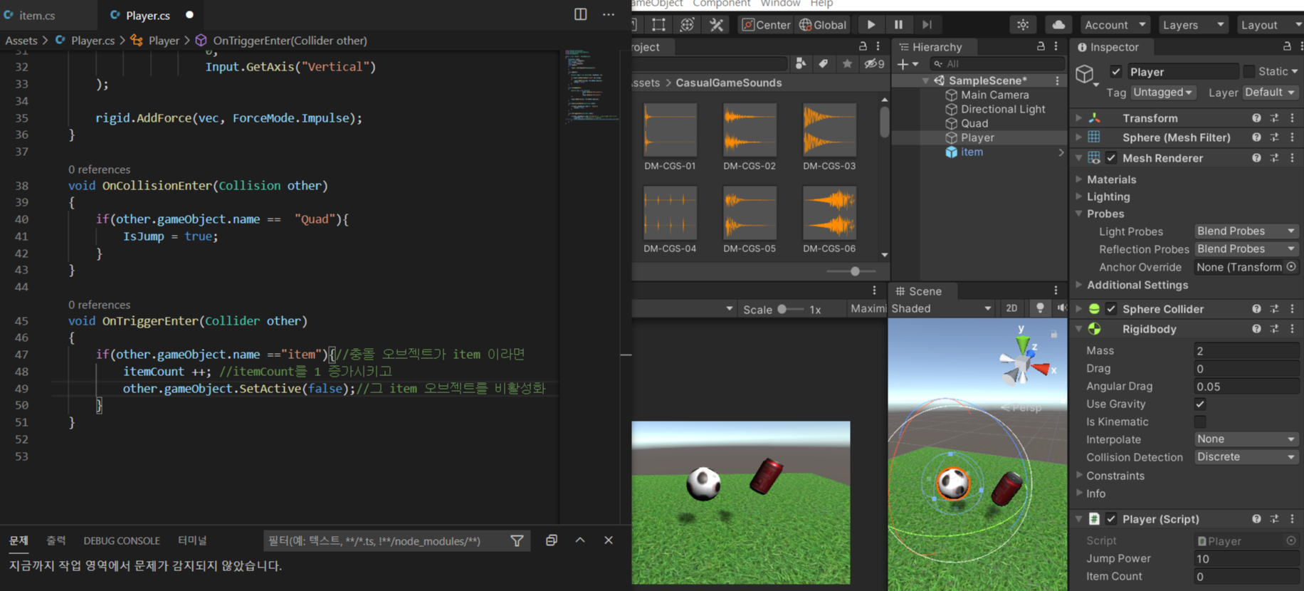 (1) 첫번째 방법-item 오브젝트안의 스크립트로 구현