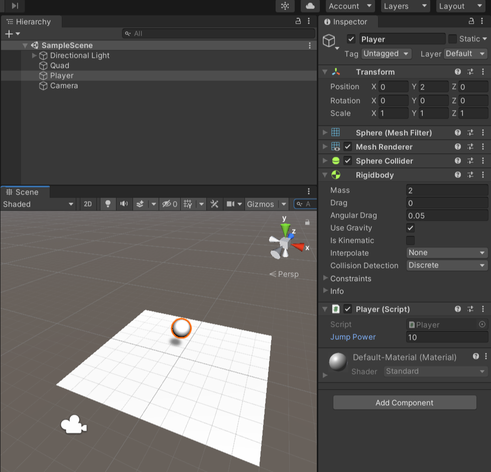 (2) 두번째 방법 - Player오브젝트안의 스크립트로 구현 --이걸로 하자