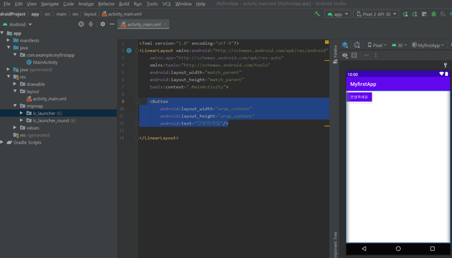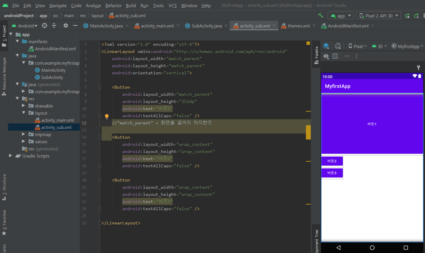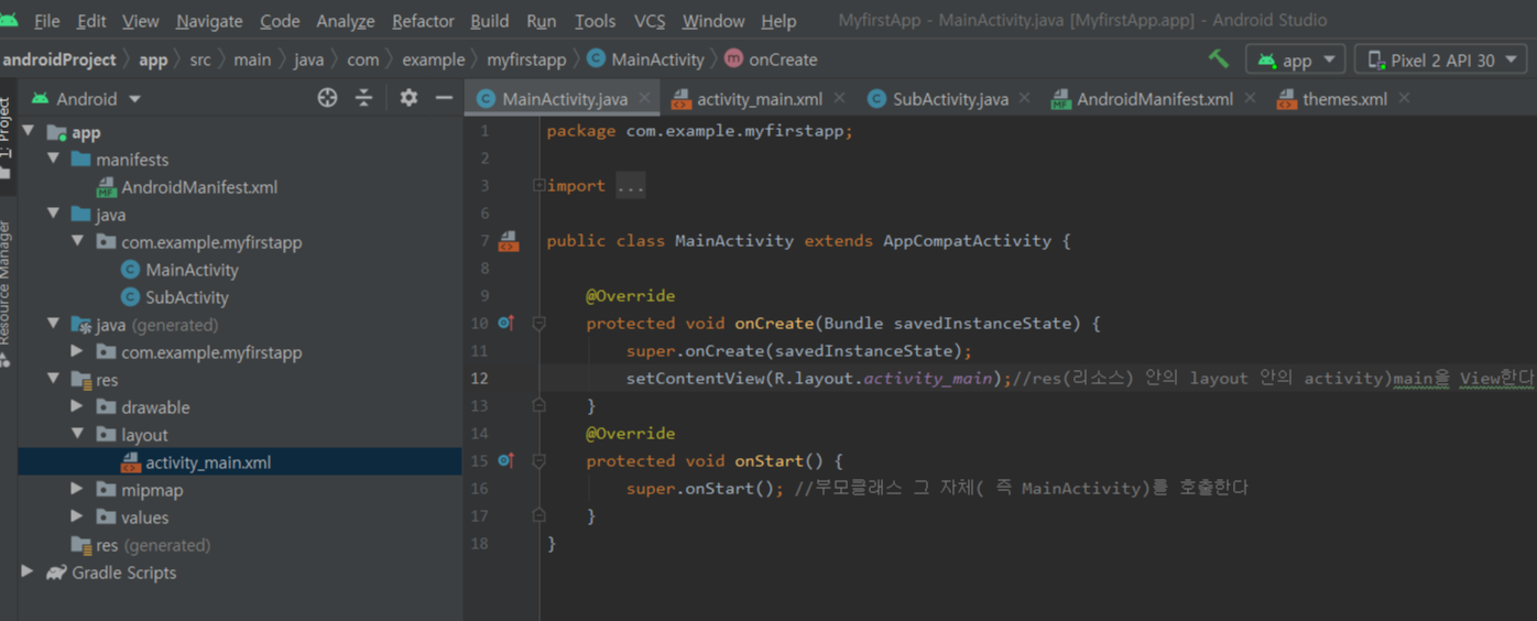 여기까지는 기존의MainActivity와 화면 구성이 같다