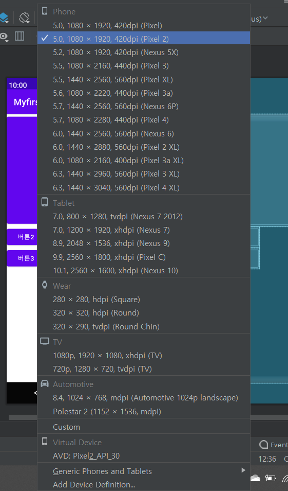 즉 예를 들어 현재 사용하고 있는 AVD pixel2를 기준으로 보자면