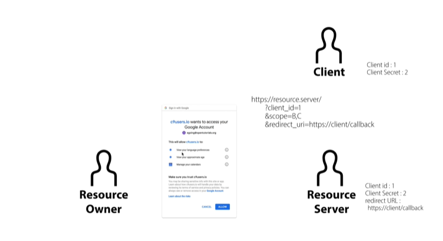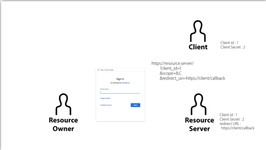 resource server = API를 통해 리소스를 제공 (구글의 리소스 저장 서버)