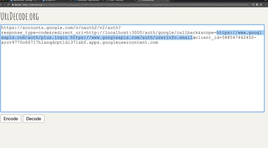redirect_url과 scopre에 대한정보(구글이 정해놓은 형식)
