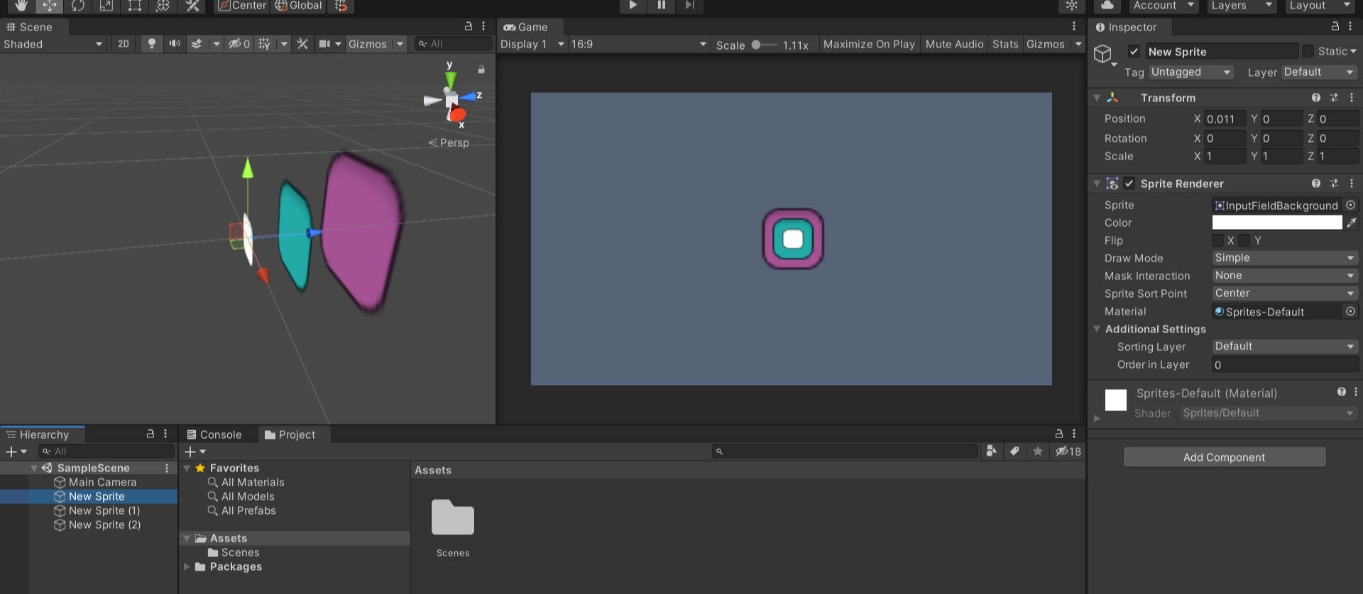 (2) - 2D오브젝트를 완전히 겹치고 inspector창의 Order in Layer이용