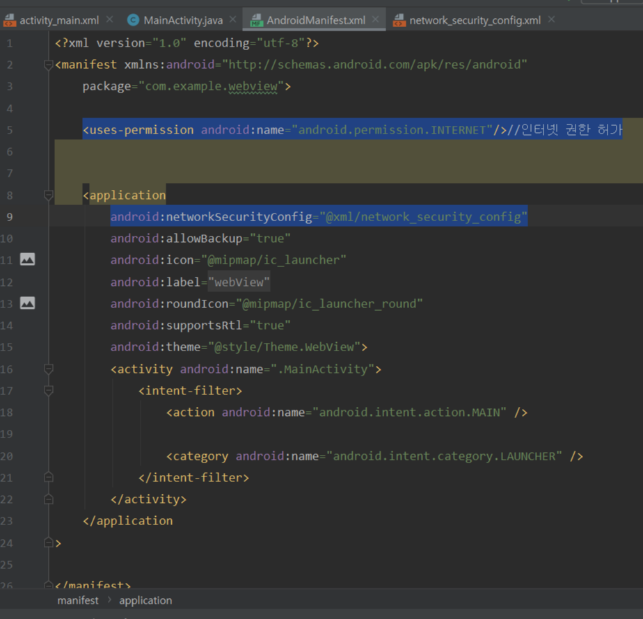 이게 없으면 어플을 실행하면 새창으로 네이버가 켜짐..