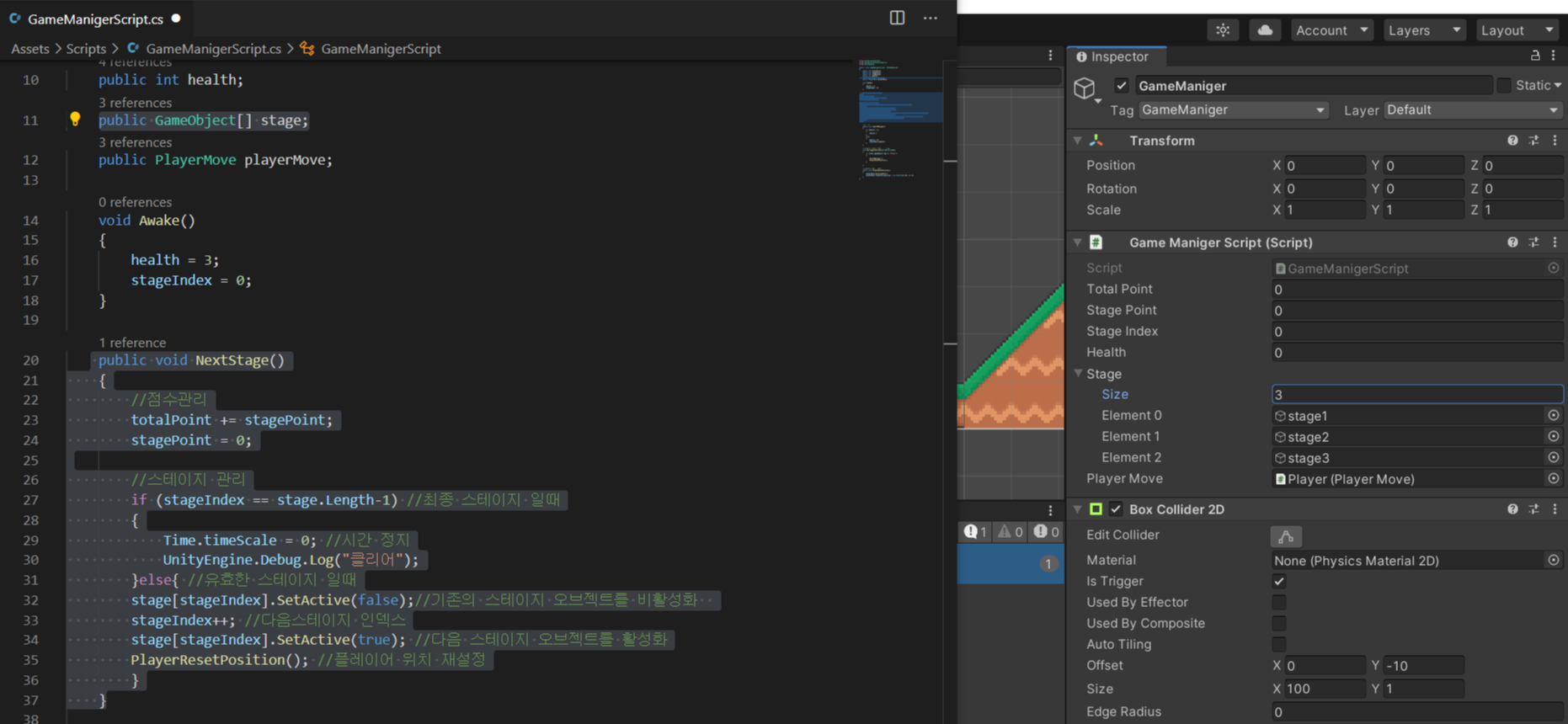 (3) - 만약 각 0부터 시작해서 스테이지의 Finish 지점에 들어갈때마다 1씩 증가하는 stageIndex가 stage.Length -1