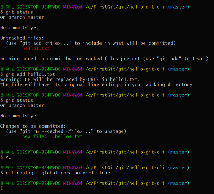 안녕하세요(・∀・)ゞ Git을 설치하고 GitBash에서 git add 명령어를 입력했는데 git add bora.txt warning: LF will be replaced by CRLF in bora.txt. The file will have its original line endings in your..