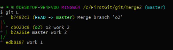 (4) - git merge o2 를 하면 현재 branch인 master branch의 master work 2 버전을 중심으로
