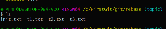 (2) - base가 될 버전(아래에서는 ffa5e7e = topic)으로 rebase를 한다 git rebase ffa5e7e or git rebase topic