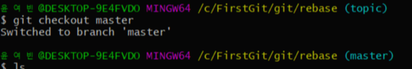 (1) - base를 이동시킬 브런치로 HEAD를 옮긴다 git checkout master