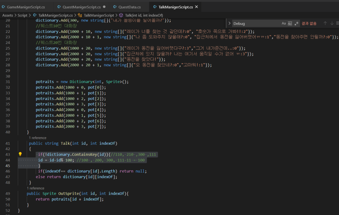 (4) - 해당 퀘스트중 오브젝트에 di와 대사가 없을 경우 기본 대사를 불러오도록 예외처리 하기