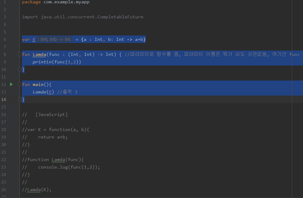 *fun Lamda(아무변수명가능 : (Int, Int)-> Int){