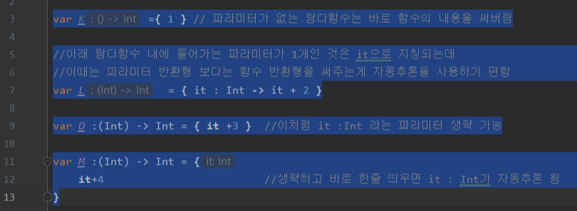 *var K : (Int, Int) -> Int = {a, b -> a+b} 혹은