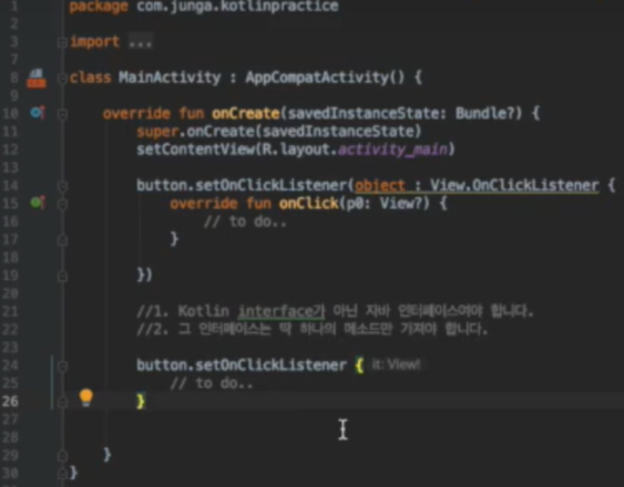 3. OnclickListener에서 람다 리터럴 표현식을 쓰는 예제 (실전편)