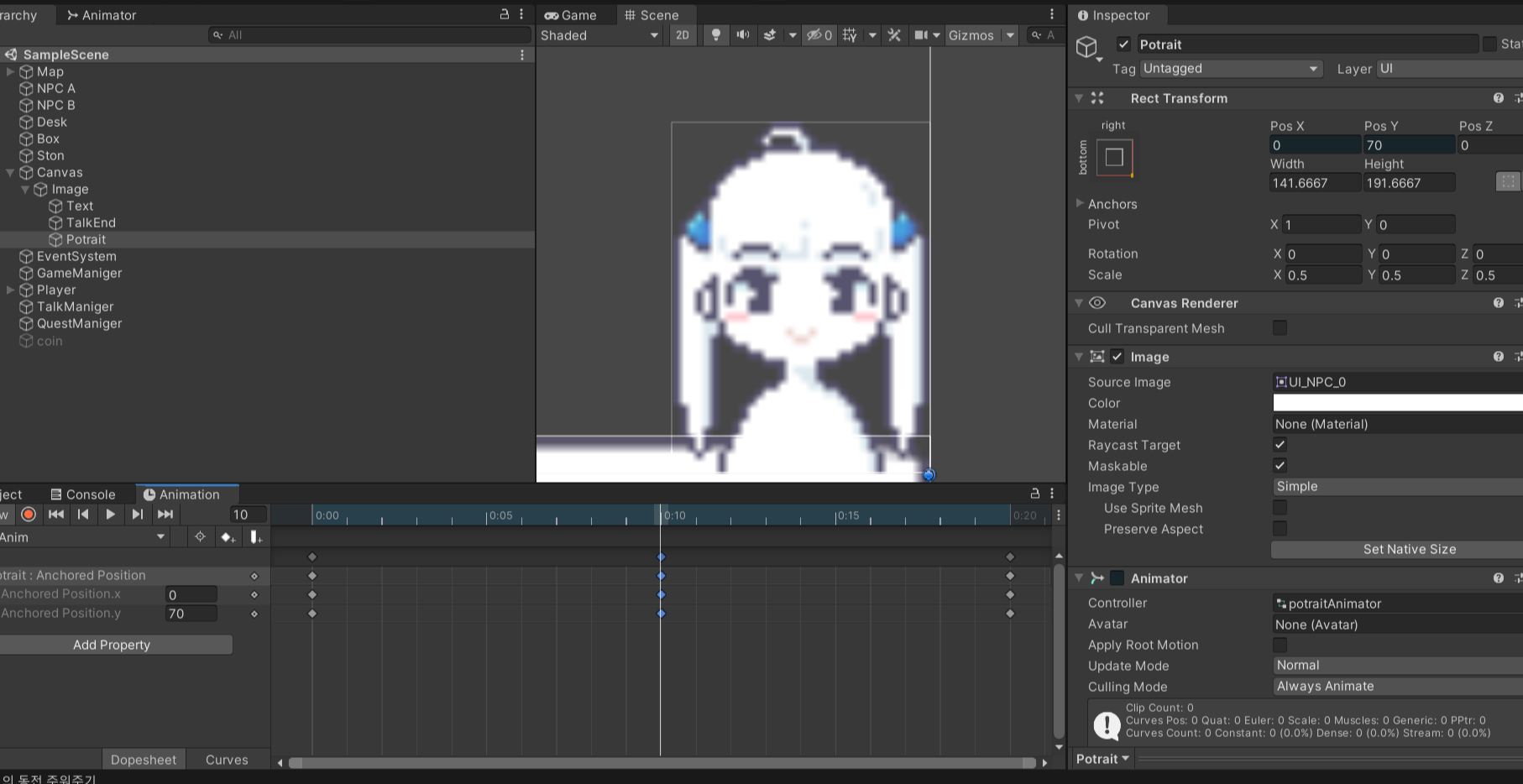 (3) - potraitAnimation을 Anchored Position을 이용해 초상화가 살짝 내려갔다가 다시 원위치로 올라오는 애니메이션