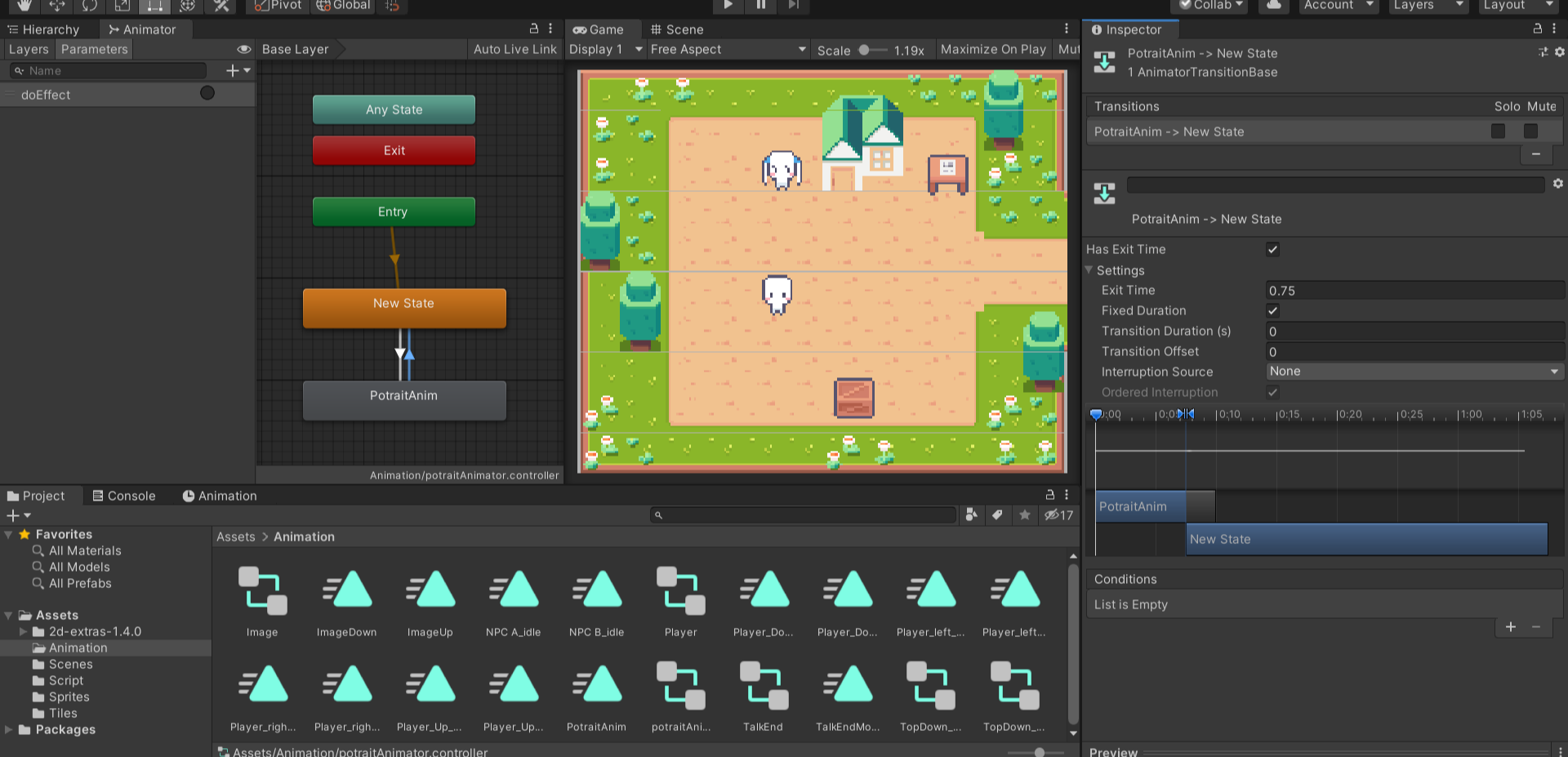 *이렇게 하면 doEffect Trigger에 의해 New State에서 PotraitAnim로 넘어와 애니메이션이 1번 실행되고
