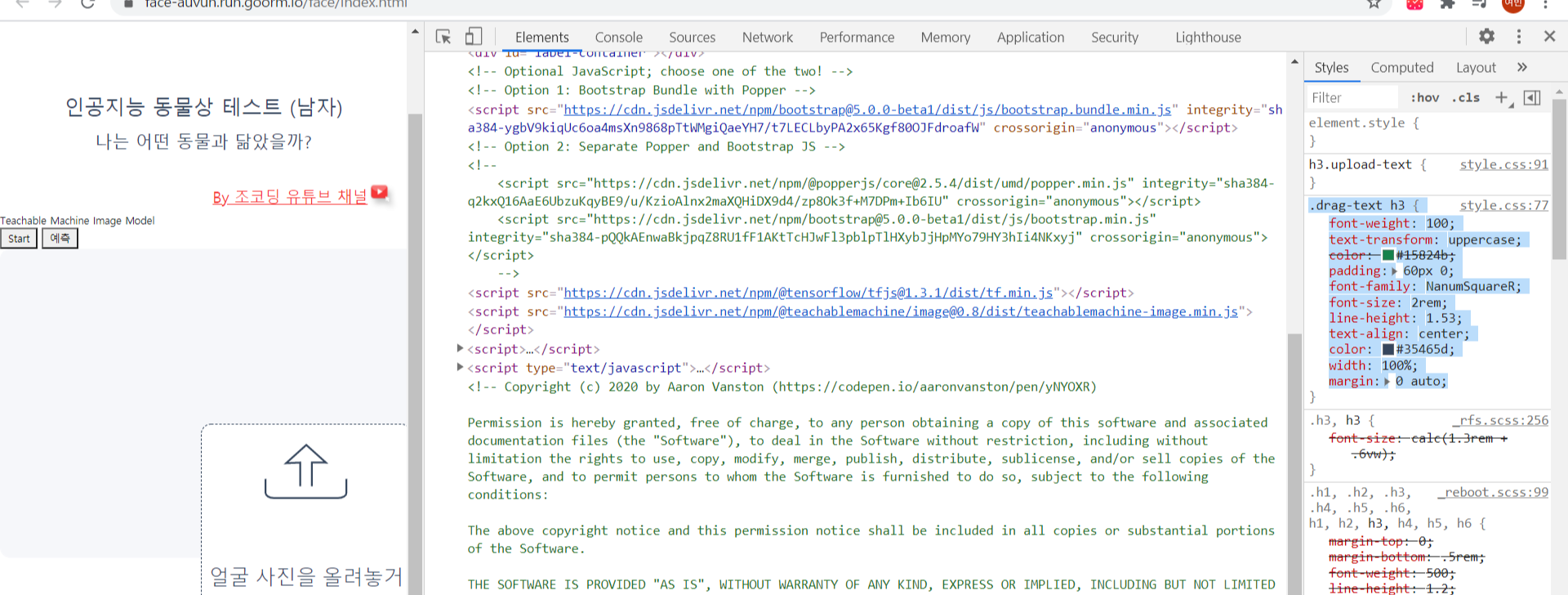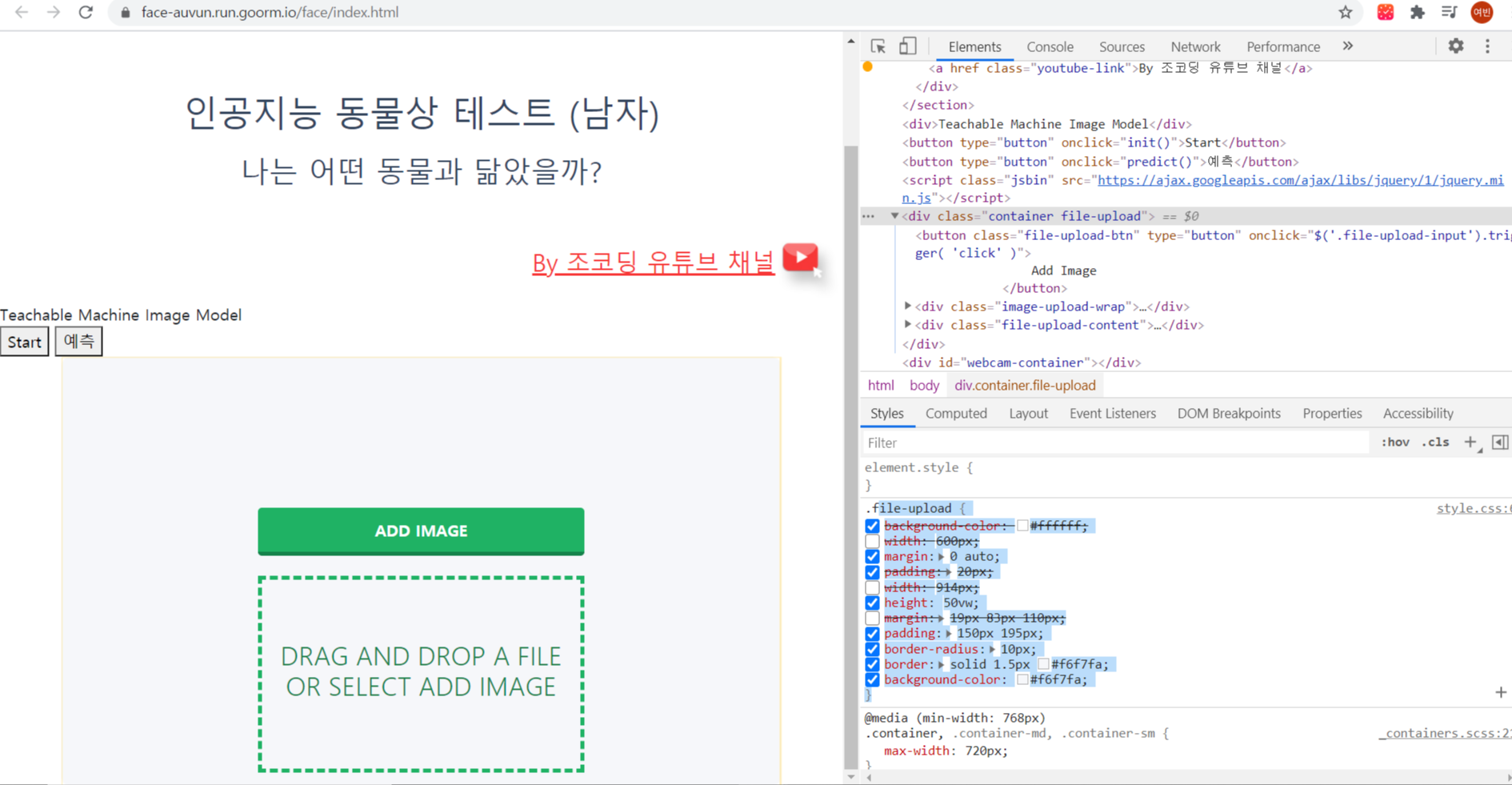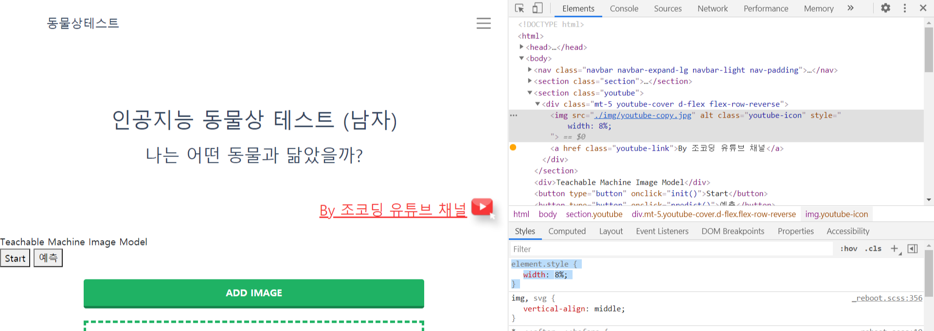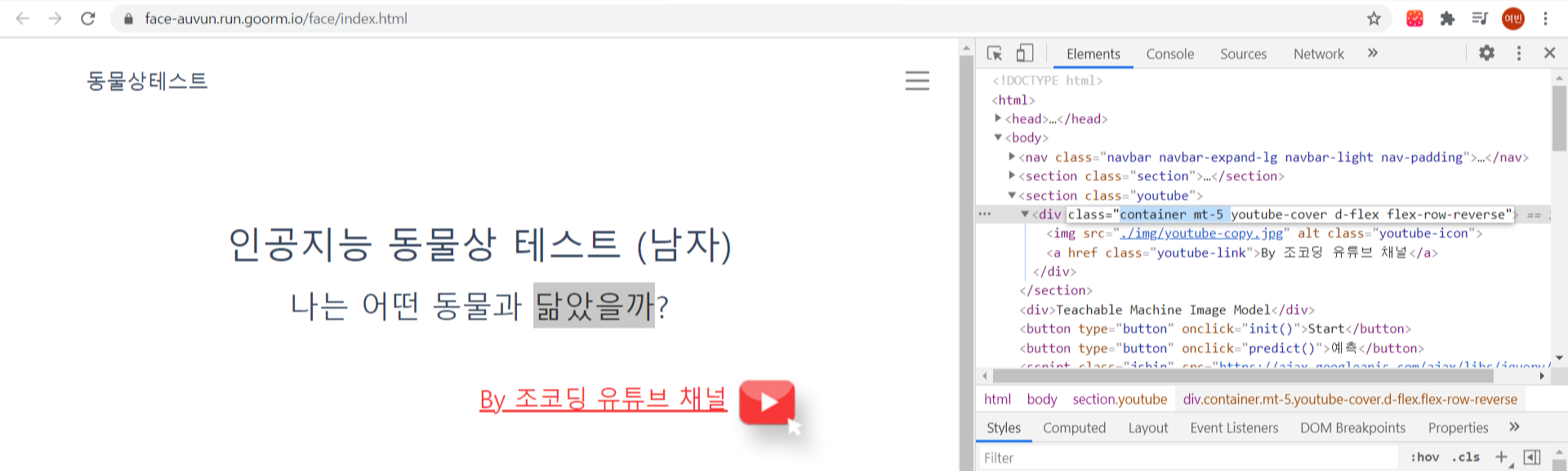 - youtube-cover class에 container 와 mt-5 BootStrap class를 주어 위치와 마진를 조정해준다