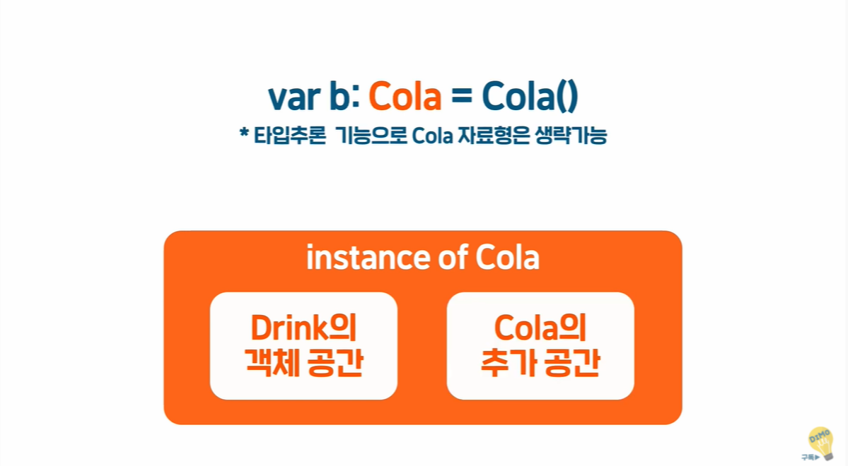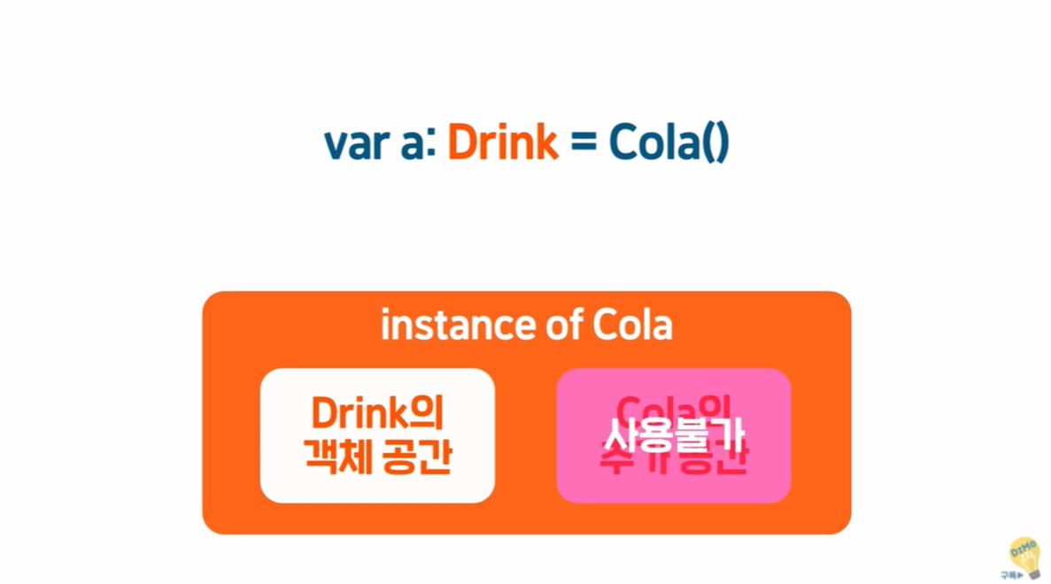 콜라()를 변수에 담을때 자료형을 : 콜라로 하게되면 음료와 콜라 두기능 모두 사용이 가능하다
