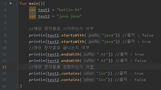 (3) - 해당 문자열로 시작하는지 끝나는지 포함하는지 여부를 bool값으로 반환하는 함수