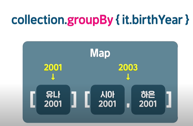 특정한 값을 key로 지정하여 해당 값을 가진 객체끼리 묶은 배열을 value로 하는 map을 반환