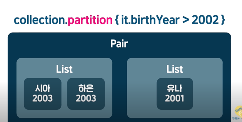 : 아이템에 조건을 걸어 true인지 false인지에 따라 두 컬렉션으로 나누는데