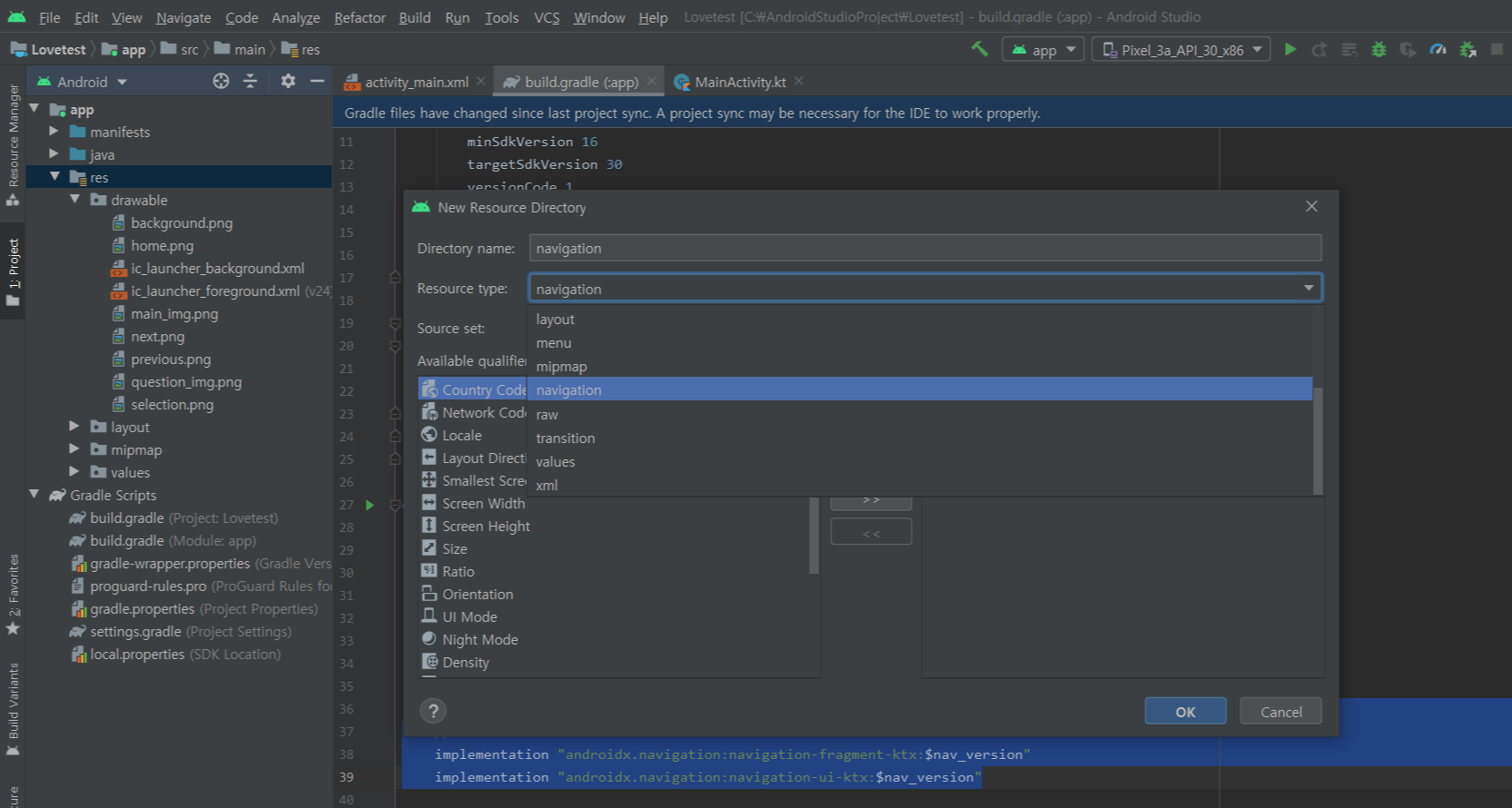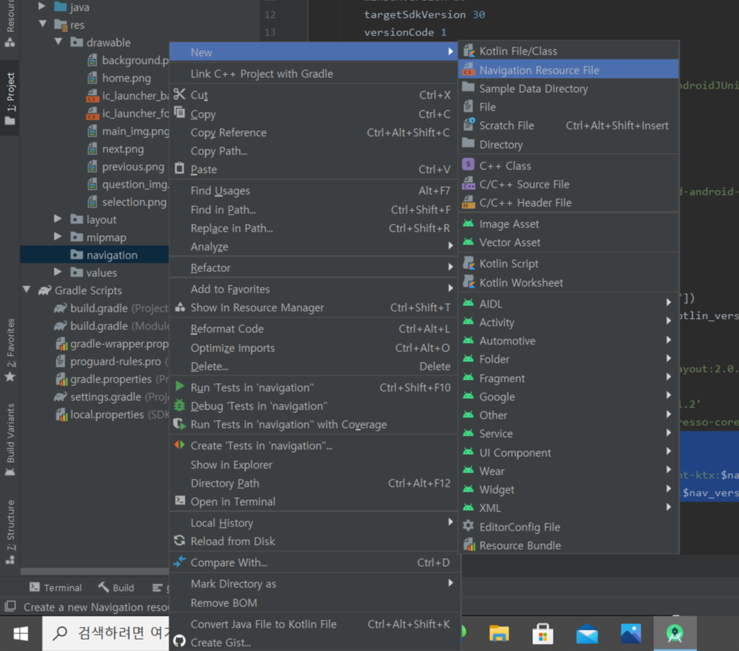 - res 폴더에 새로운 navigation 폴더 생성