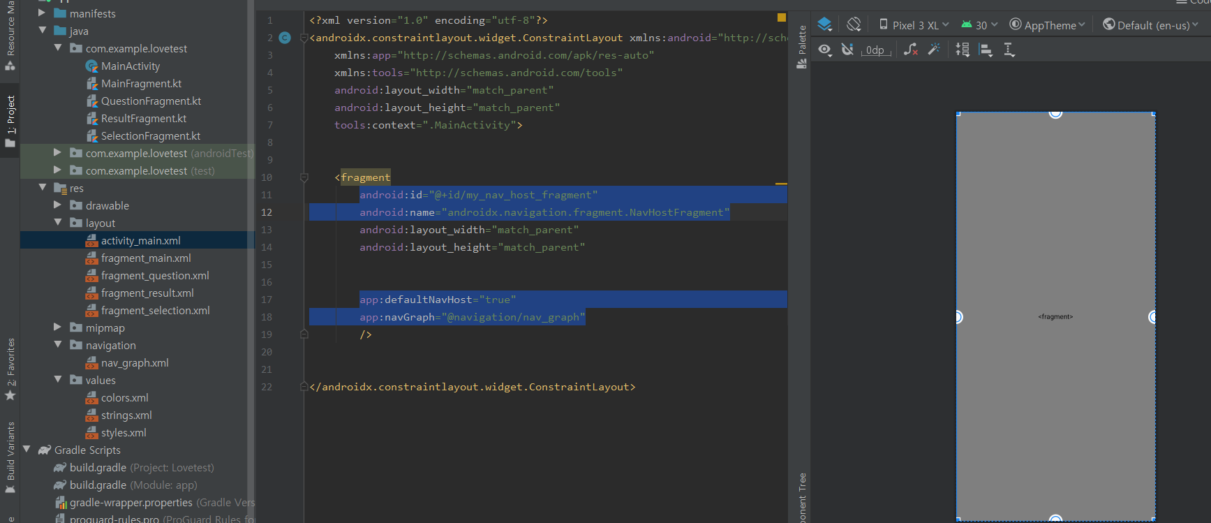 - nav_graph.xml 이 생성되는데 이것은 네비게이션상태를 눈으로 볼수 있게 GUI로 보여주는 것
