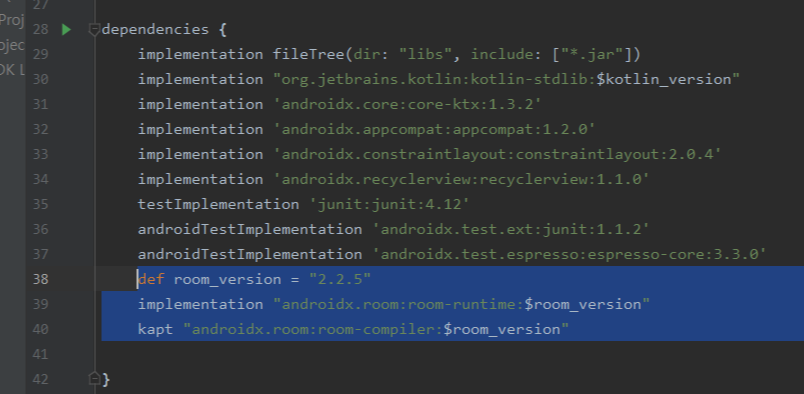 1.RoomDataBase 사용하기 위한 의존성 추가 및 싱크