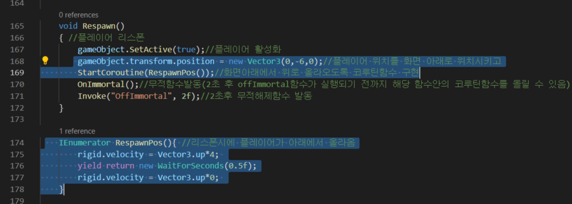 2. 리스폰되었을때 2초간 무적시간을 주고 그동안 플레이어가 깜빡거리는 이펙트 주기
