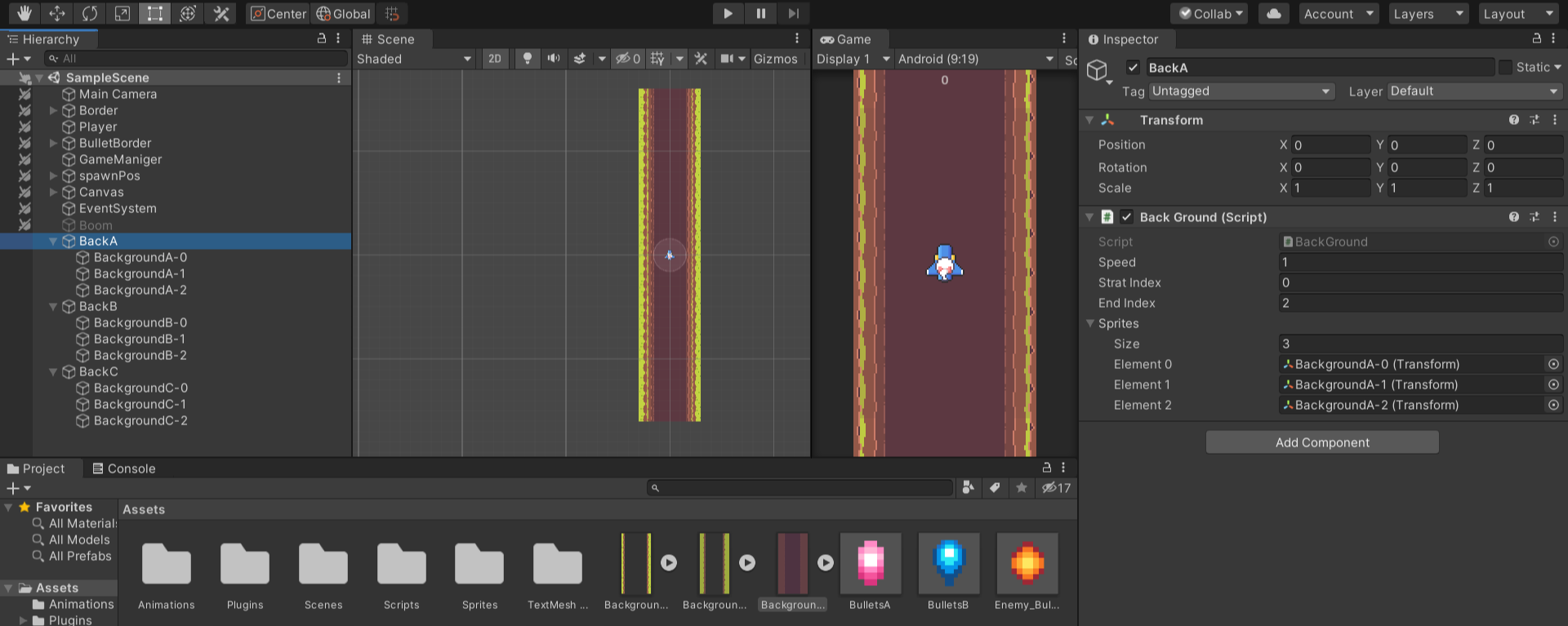 (1) - BackA 에는 BackGroundA 스프라이트 3개