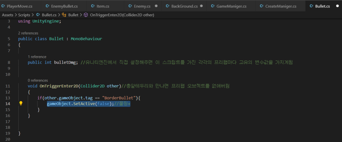 2. 플레이어총알 풀링