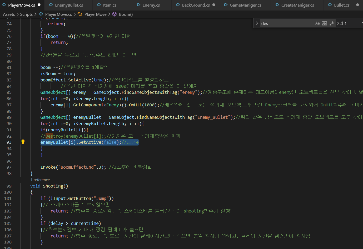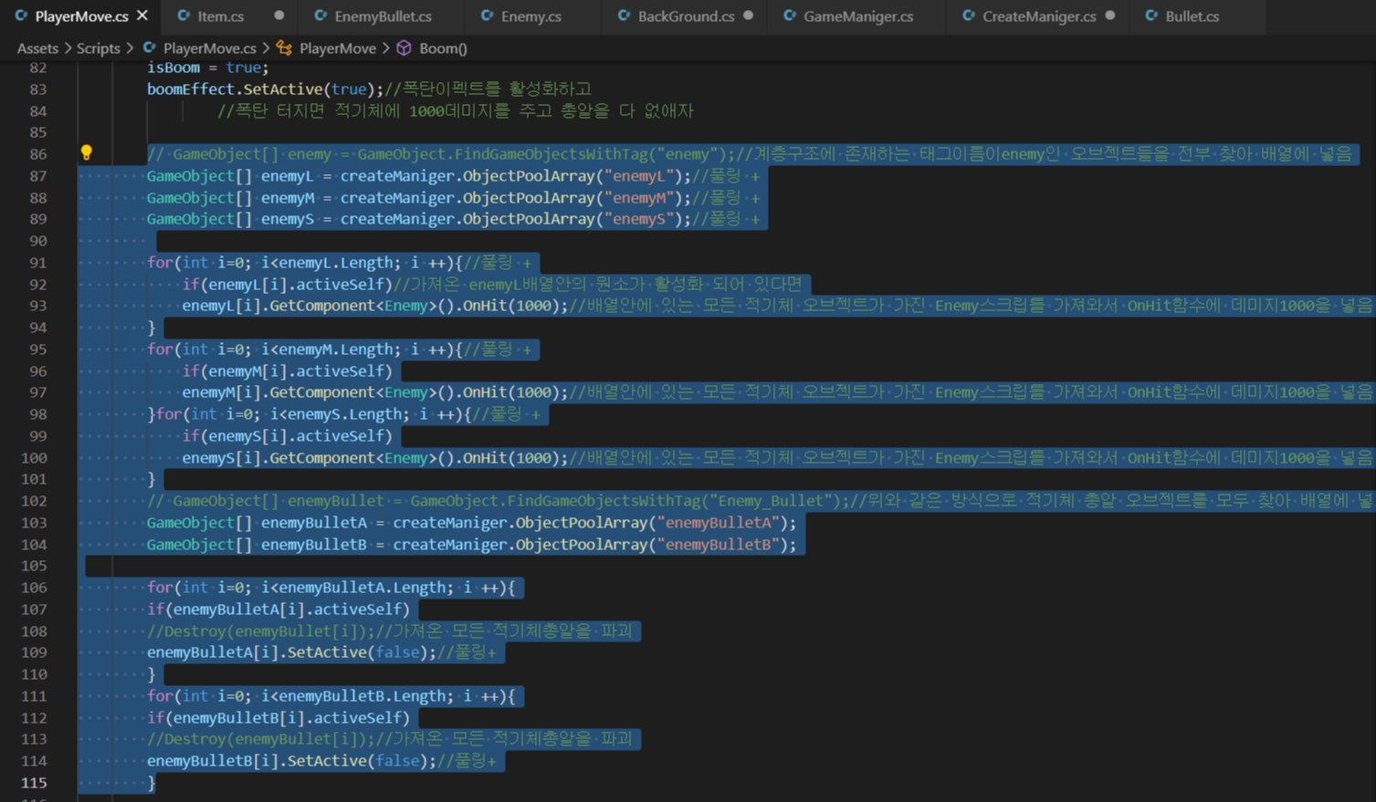 5.player의 Boom함수를 리펙토링 기존의 find함수를 대채하여 최적화