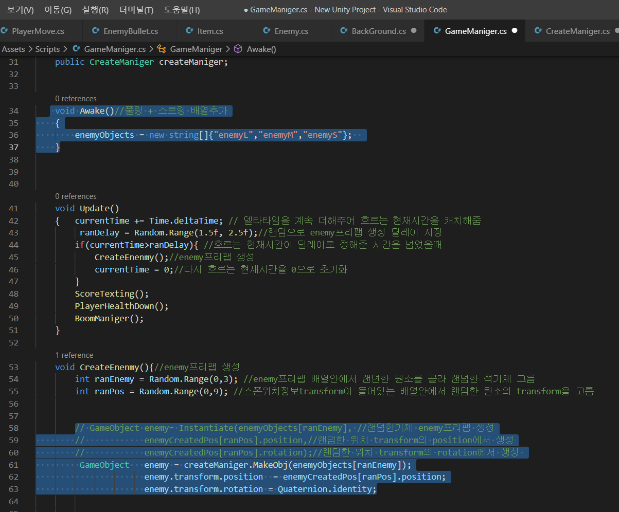 | Unity2D_Shooting - 오브젝트풀링_CreateManiger생성 (0) | 2021.01.19 |