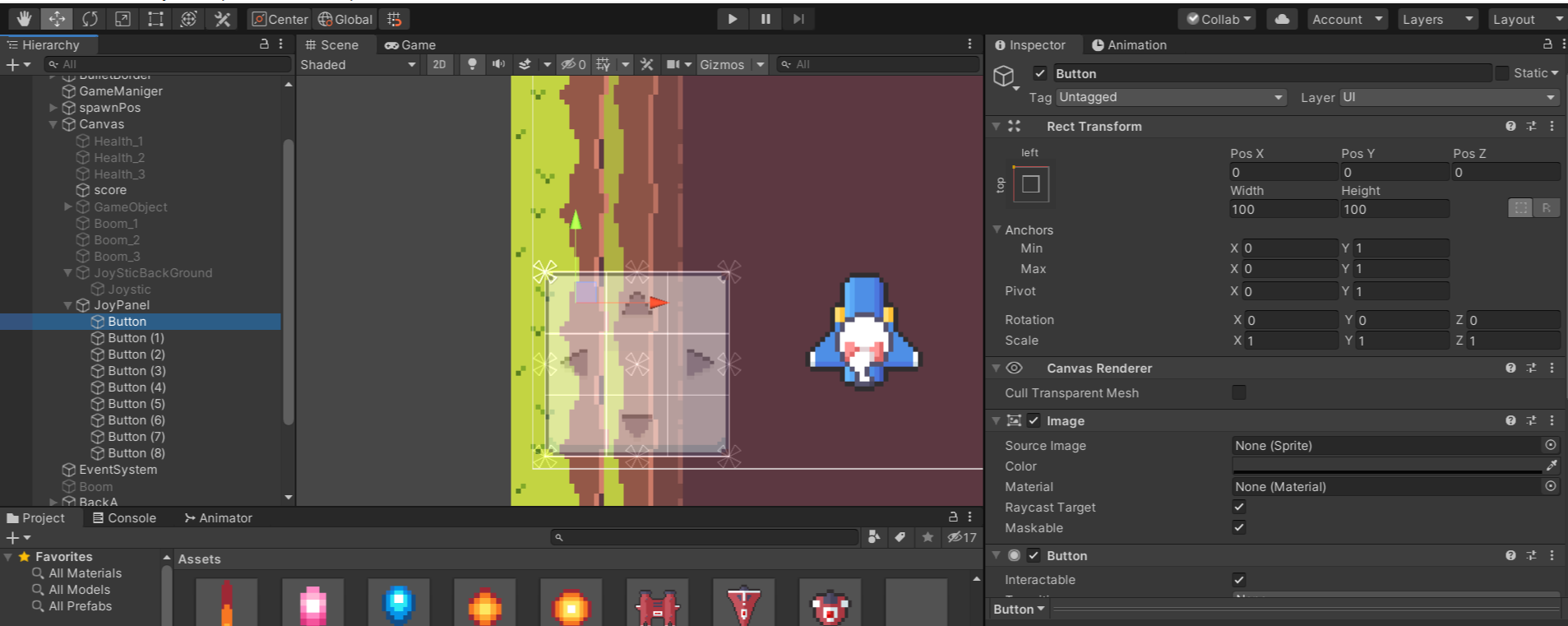 - JoyPanel 이미지를 9등분하여 9개의 버튼을 만든다 (버튼 이미지 none, Text 삭제, colot tint none)