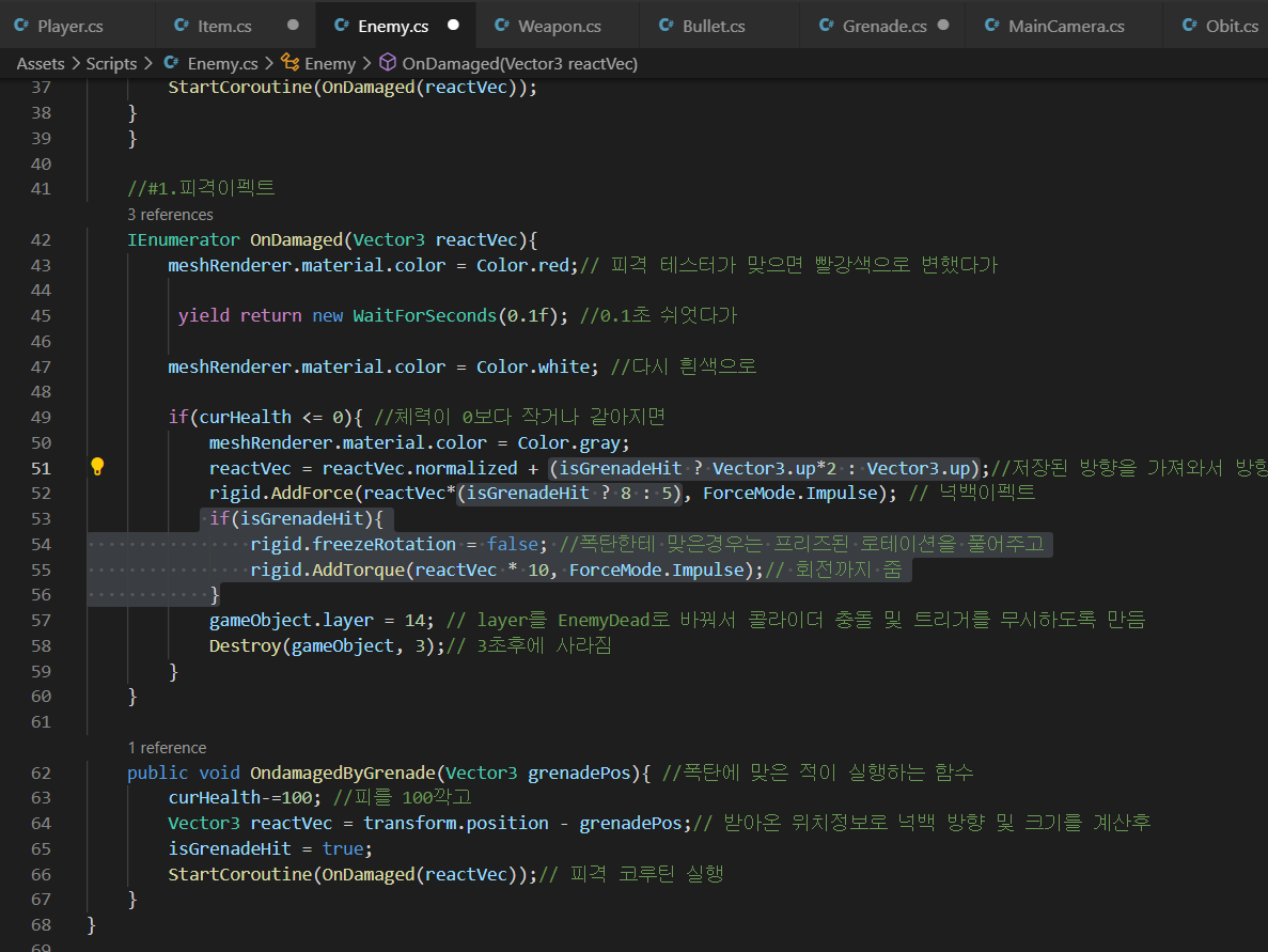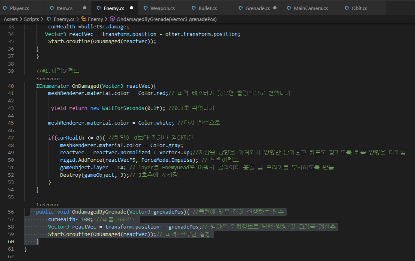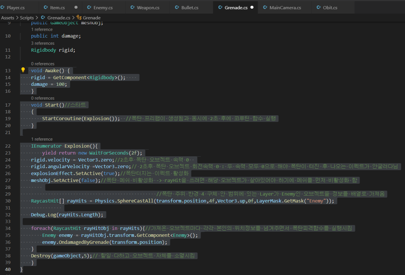 4. 폭탄에 맞아서 폭탄피격 범위 안에서 스캔된 enemy 스크립트