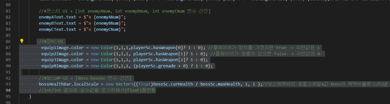 3) 장비UI , 보스HP UI 구현