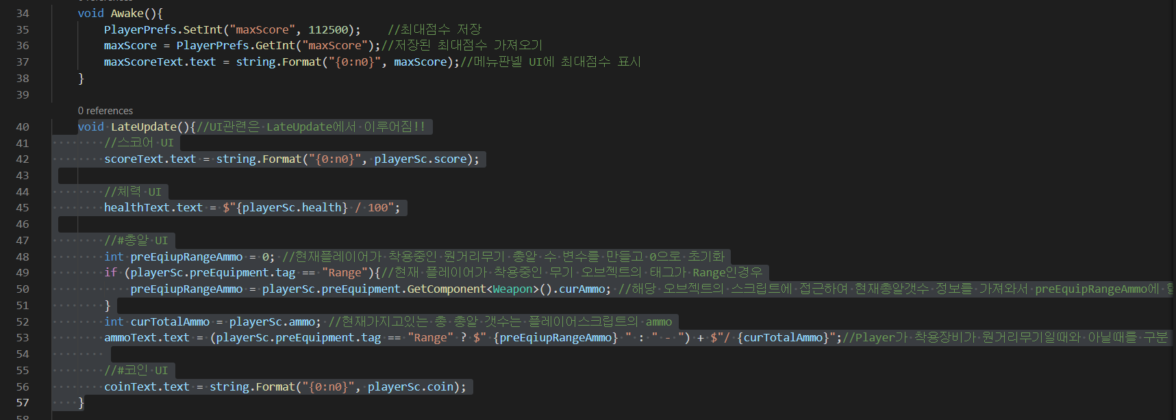 *UI업데이트는 LateUpdate()에서 구현