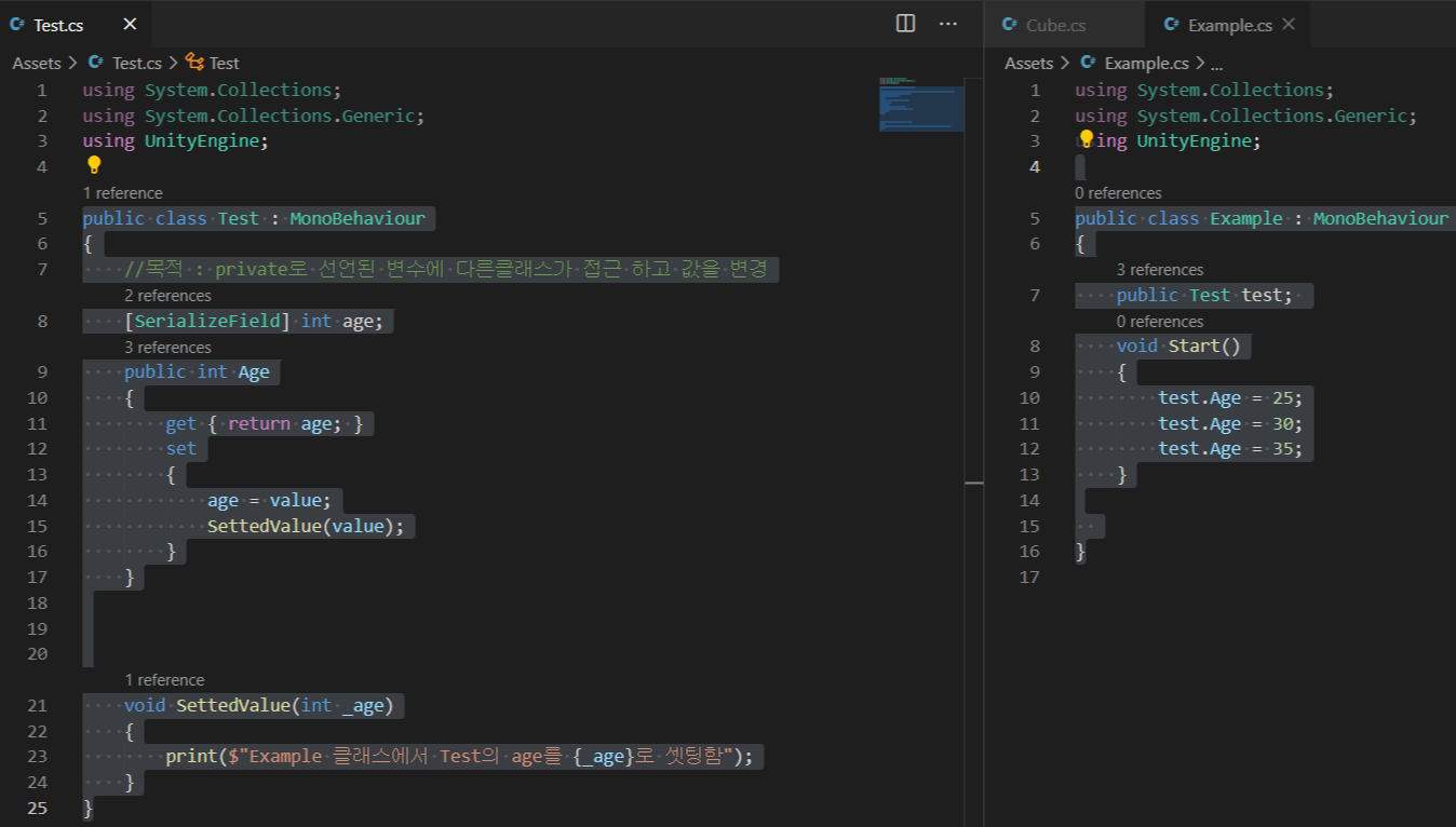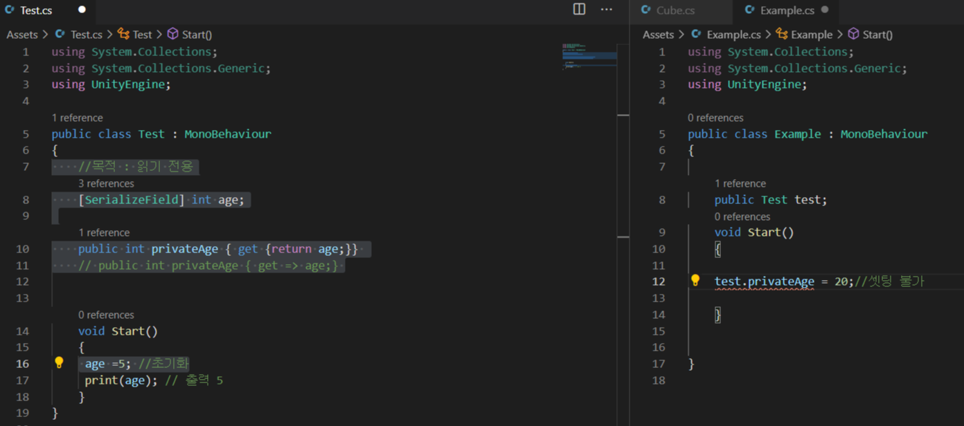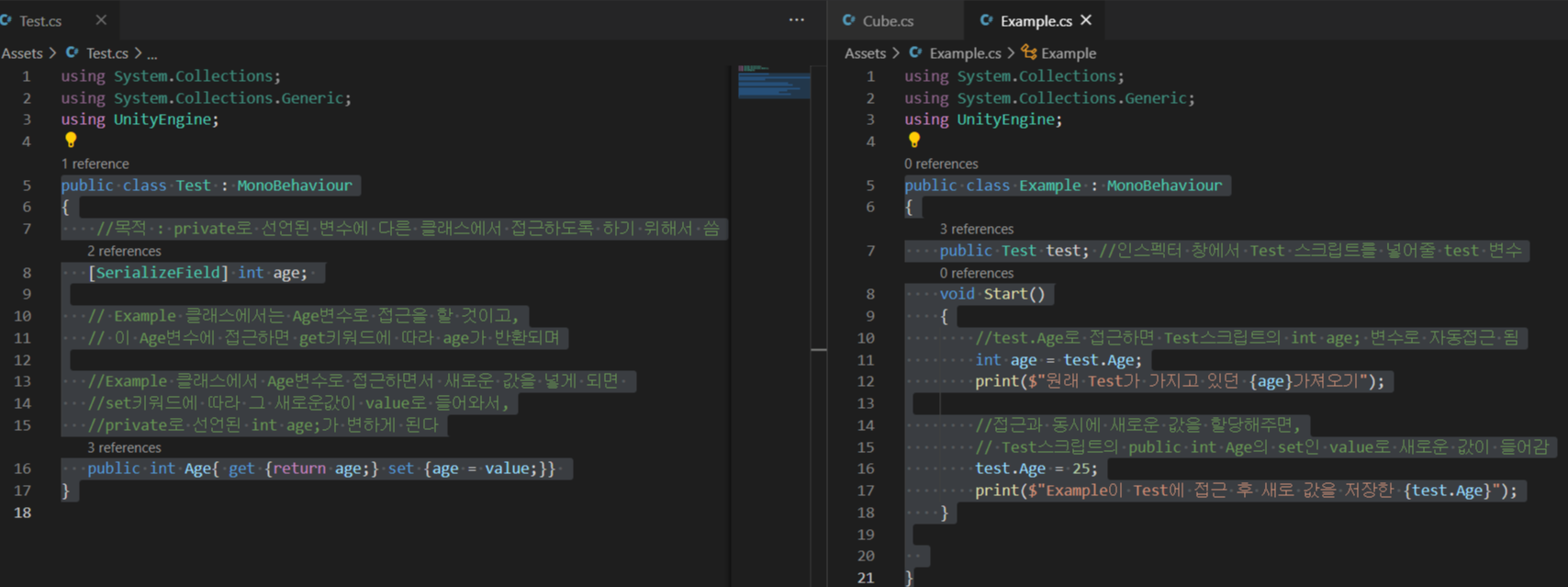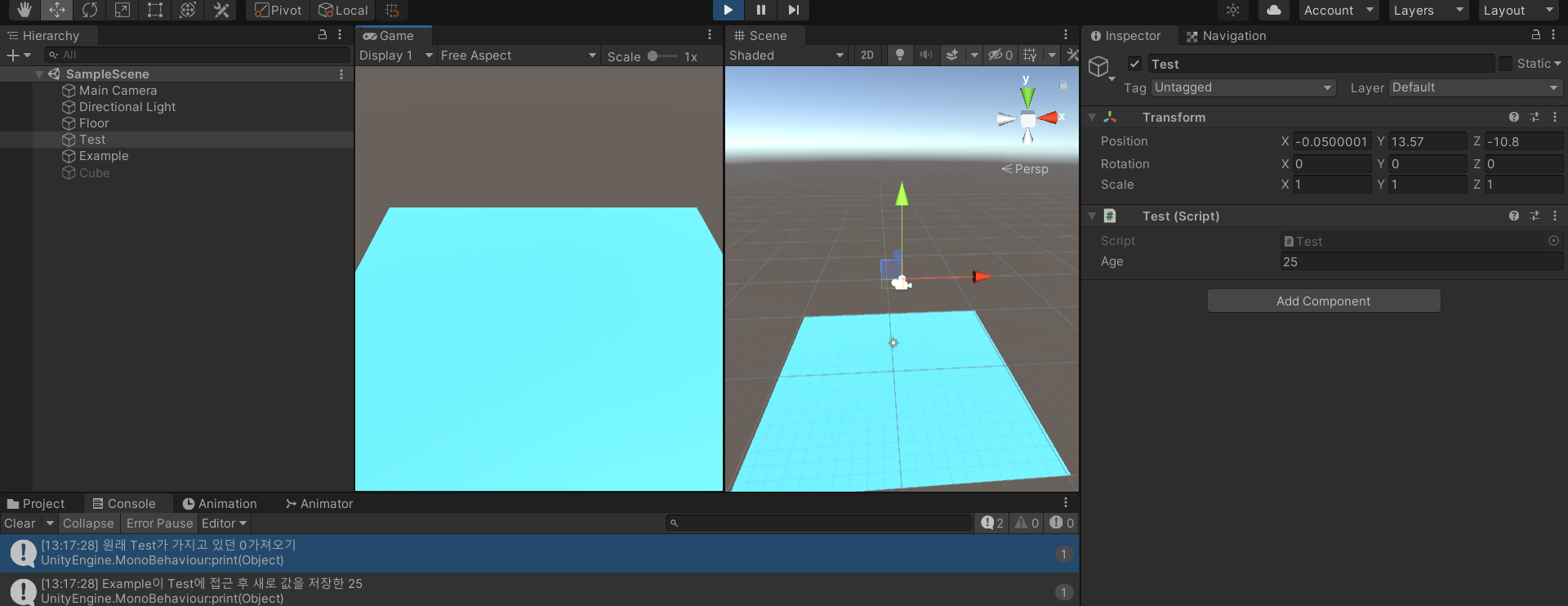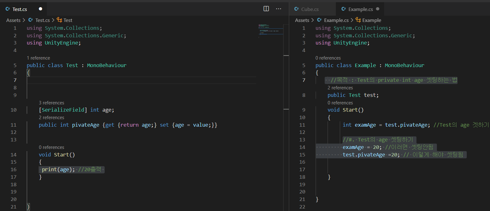(근데 이렇게 하면 [SerializeField] public int Age)를 해도 인스펙터창에서 안보임...) 별로 쓸용도는 없을듯