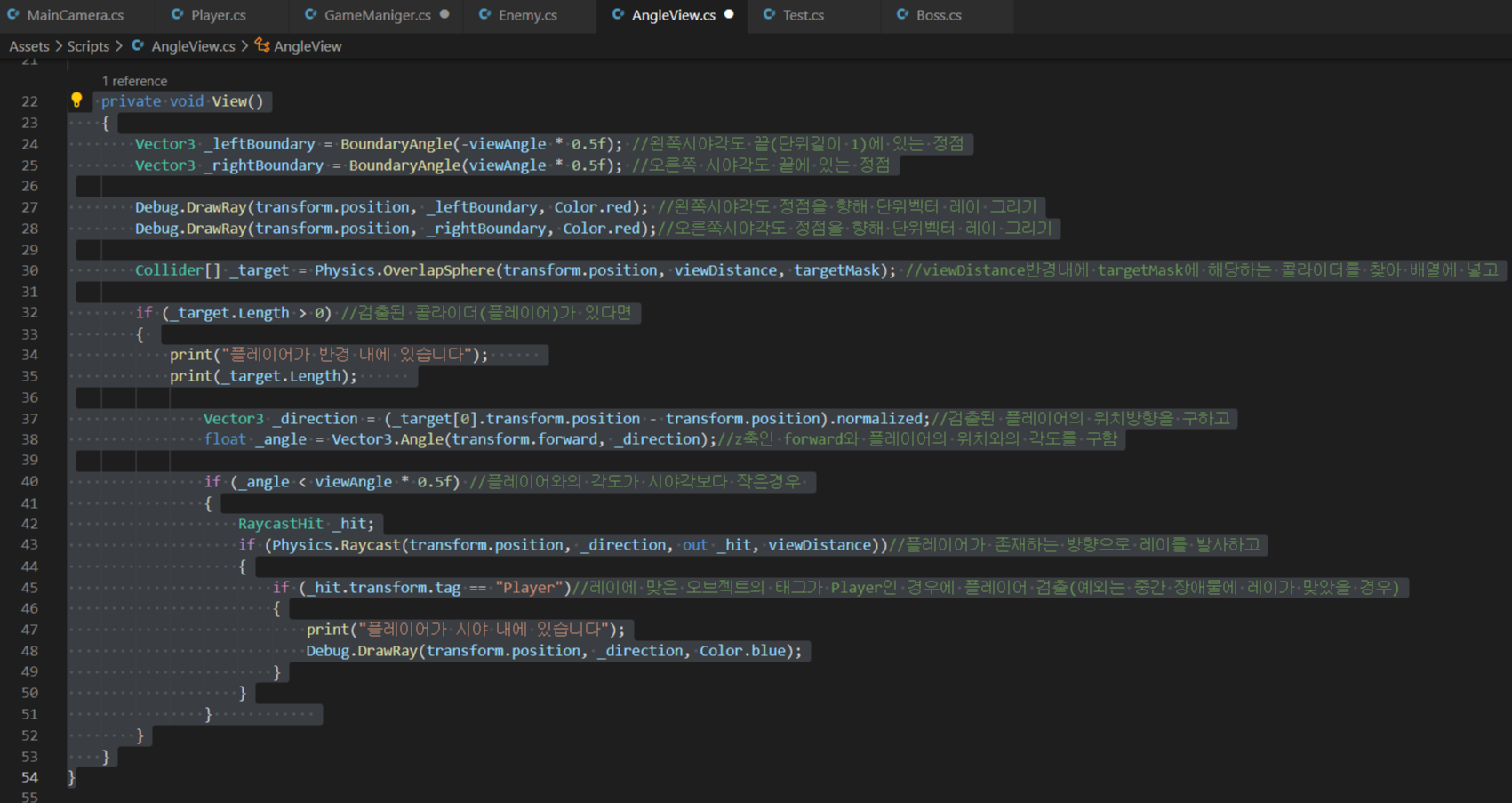 - 오른쪽으로 fieldOfview 각도만큼 회전한 (float angle)