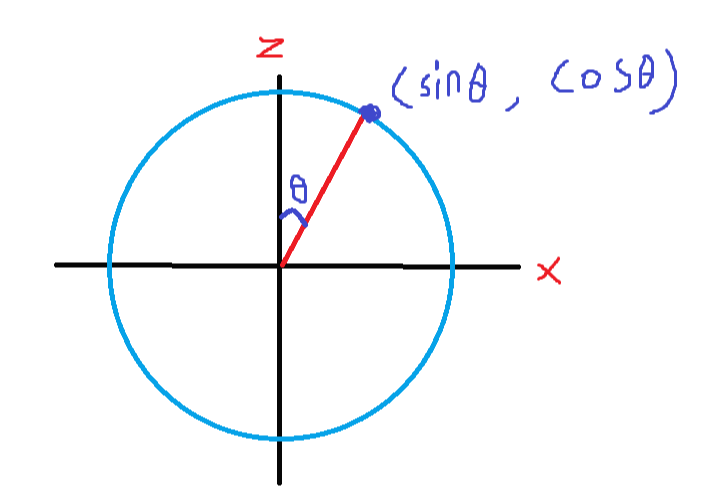 - 우리는 방향값인 벡터만 알면되기 때문에 아래 원의 반지름을 1이라고 가정한다