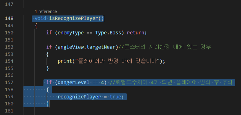 4위험도가 되면 플레이어를 발견한걸로 하고 추적하도록 만들고 싶다