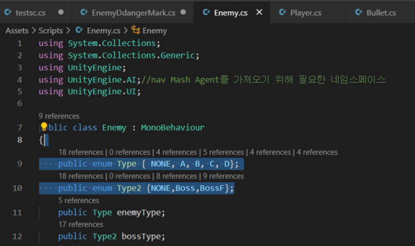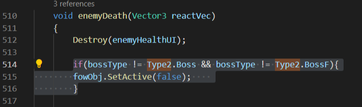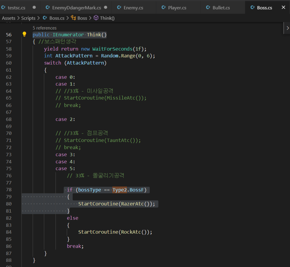 - 보스F 인경우 Enemy 스크립트에서 기존의 보스인경우만 제외했던 로직들에 보스F인 경우도 추가하기 위해