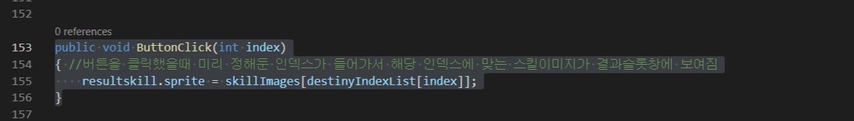 -Button 오브젝트의 인스펙터창에서 Mask컴포넌트를 활성화 시켜주고 On Click() 이벤트에 위 스크립트를 드래그 앤 드랍하고 ButtonClick()함수를 할당해주고 파라미터로 index를 0으로 준다