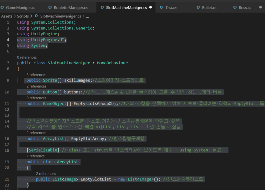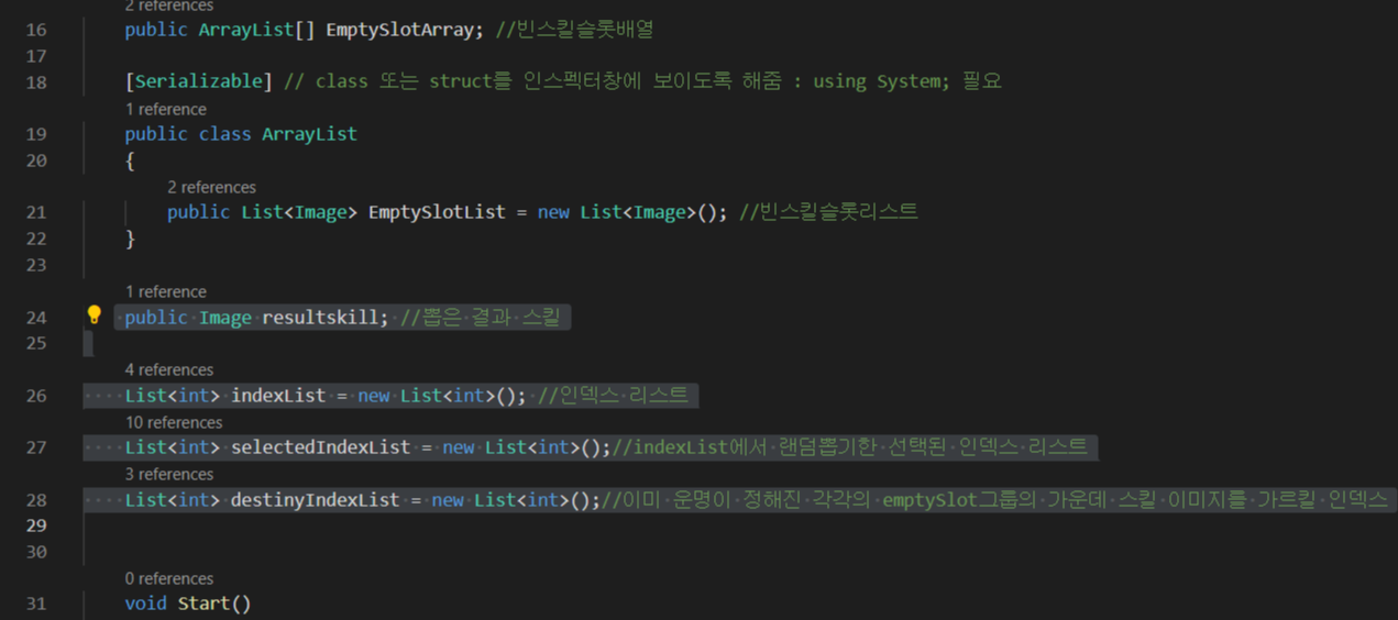 3).그 calss에 [Serializable] 키워드를 주어 인스펙터창에서 접근할 수 있게 만들어 준다
