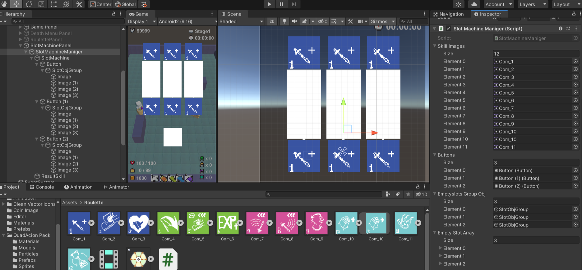4. 스킬슬롯그룹 각각 회전시키기 및 버튼 활성화