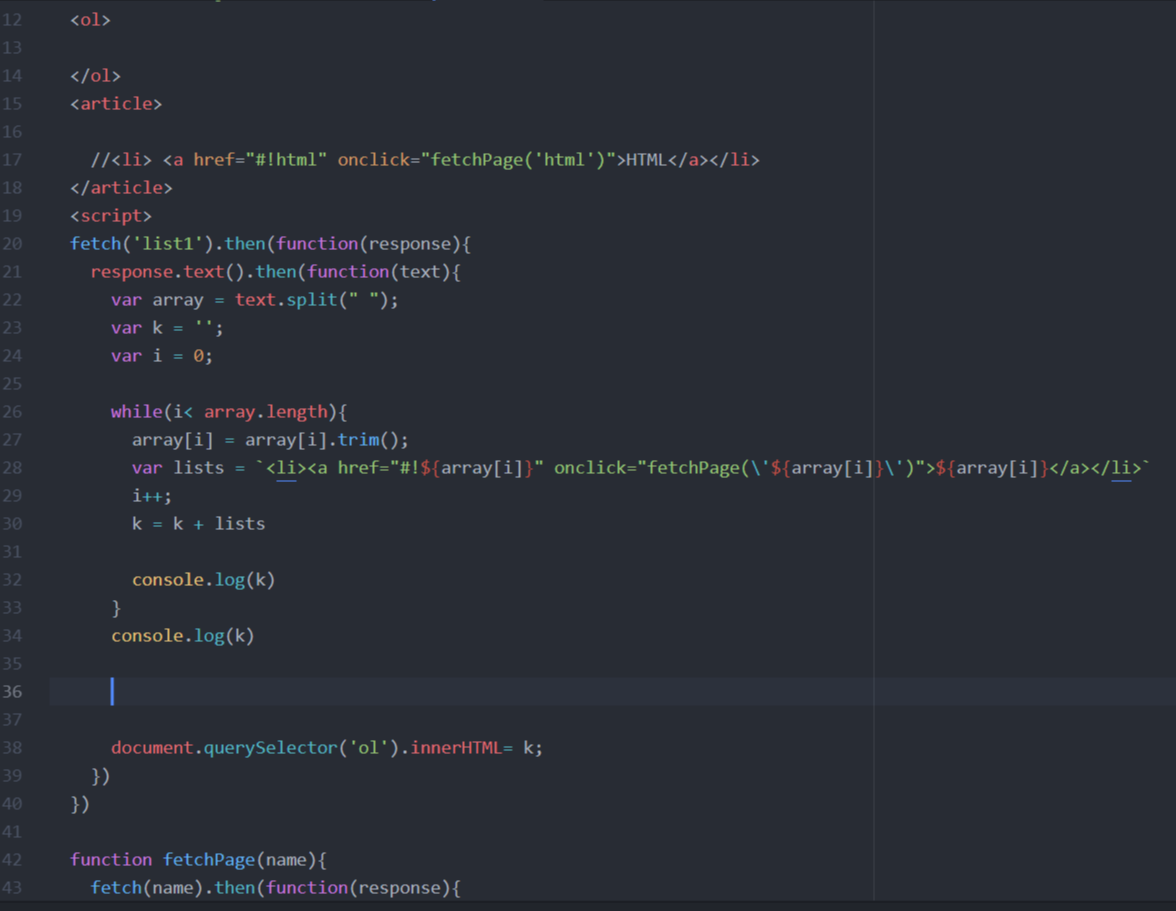 6. loop문을 돌릴때마다 <li><a href="array[i]" onclick="fetchPage('array[i]')">array[i]</a></li>