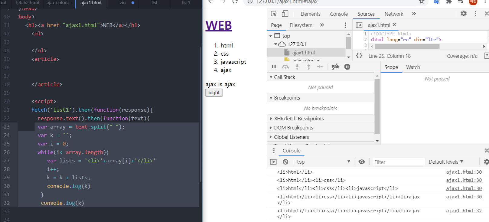마지막으로 출력된 <li>ajax</li>가 출력된다