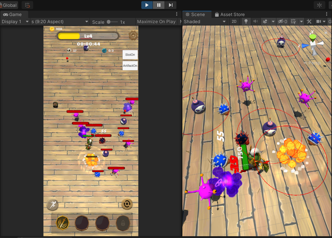 - 현재까지 몬스터C 실험을 위하여 gameStage=1로 플레이중이고 MonsterGeneration 스크립트에서도 몬스터A,B는 스폰해주지 않고 몬스터C만 스폰해주고 있음