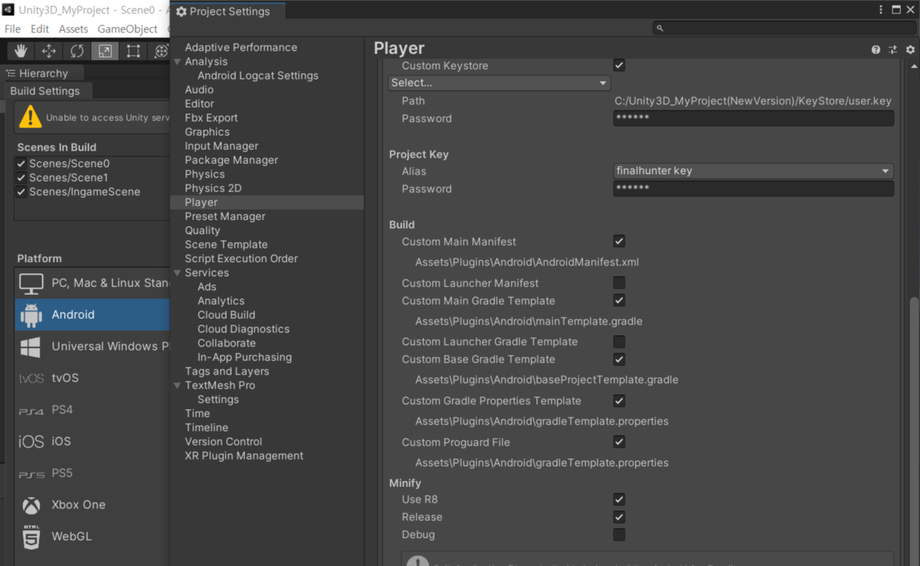 - Asset > Plugin > Android 폴더에 proguard-user.txt 파일을 생성합니다